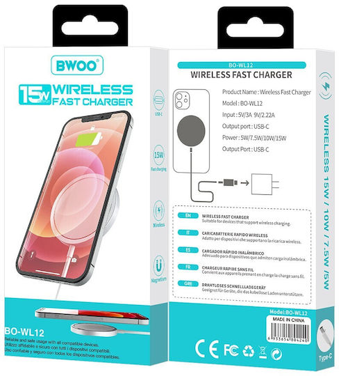 BWOO Ασύρματος Φορτιστής (Qi Pad) 15W Power Delivery (WL-12)